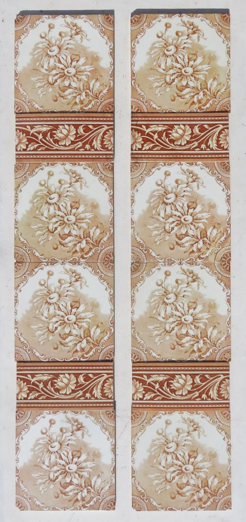 In the Tile Panel section two photos are displayed side-by-side for each set of tiles and the layout conforms to the traditional cast iron Victorian fire surround capacity which is approximately 30 x 6 inches each side.